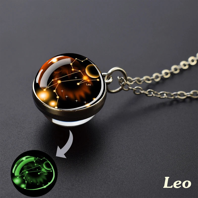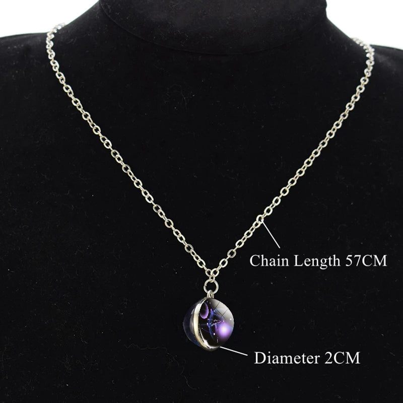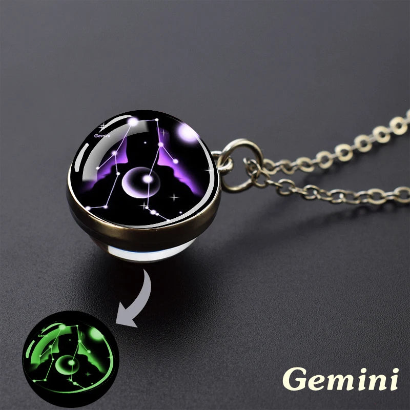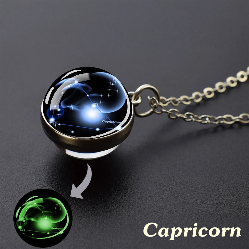 12 Constellation Necklace Starry Sky Luminous Zodiac Glass Ball Pendant Necklace Christmas Gift for Men Women